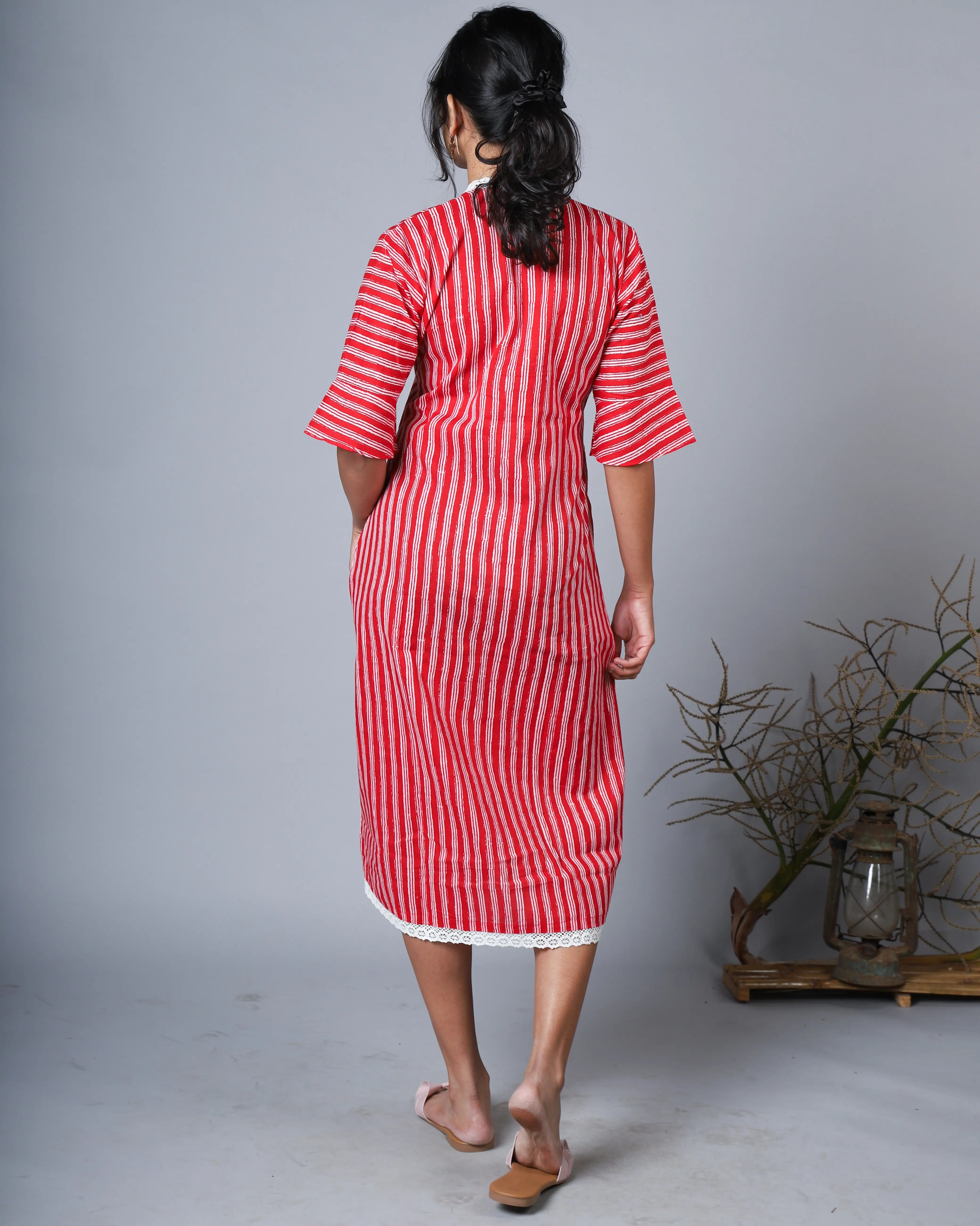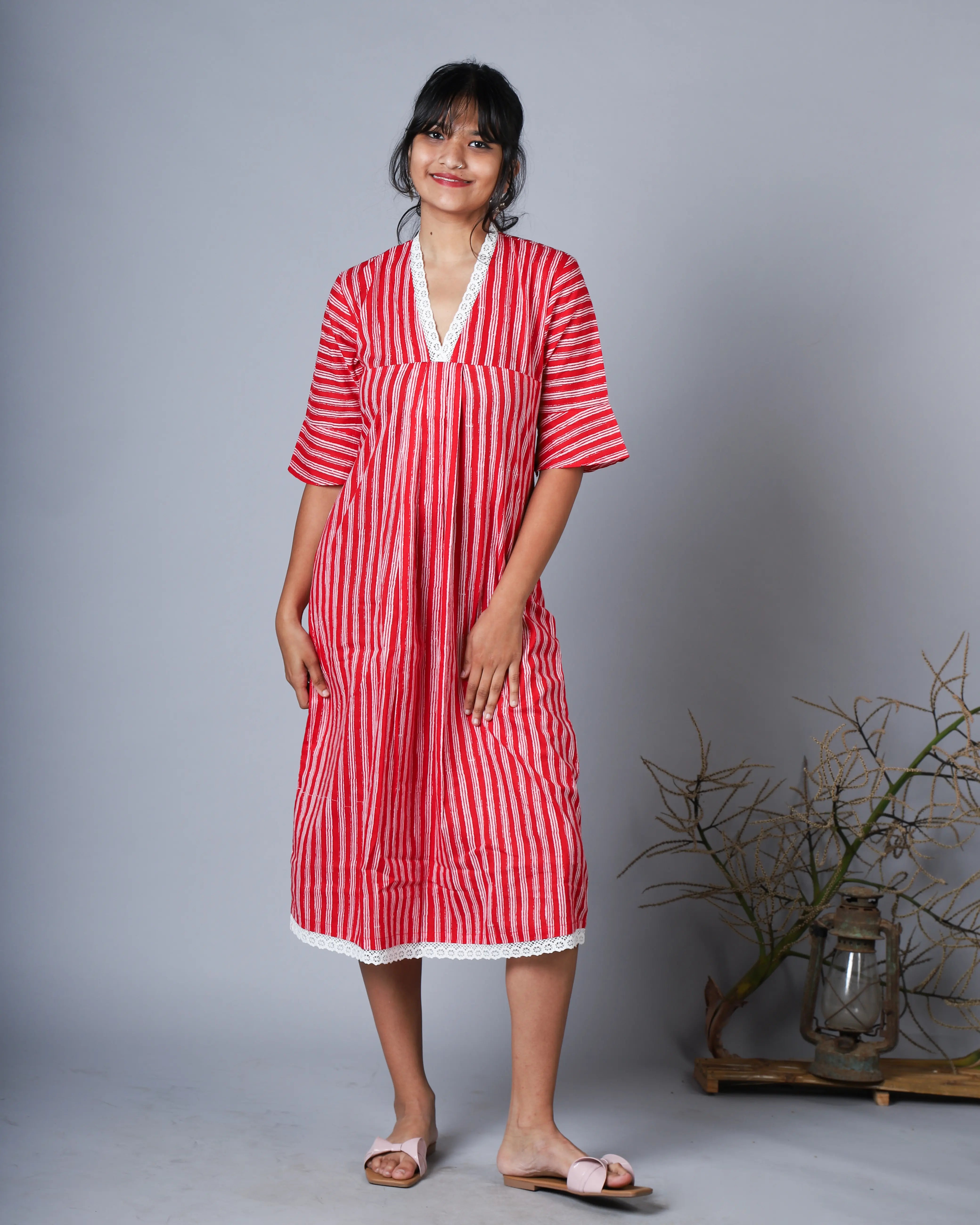 Katun Arpita Collection - Jaipur/Sanganeri Print with Front Pocket and Crochet Lace