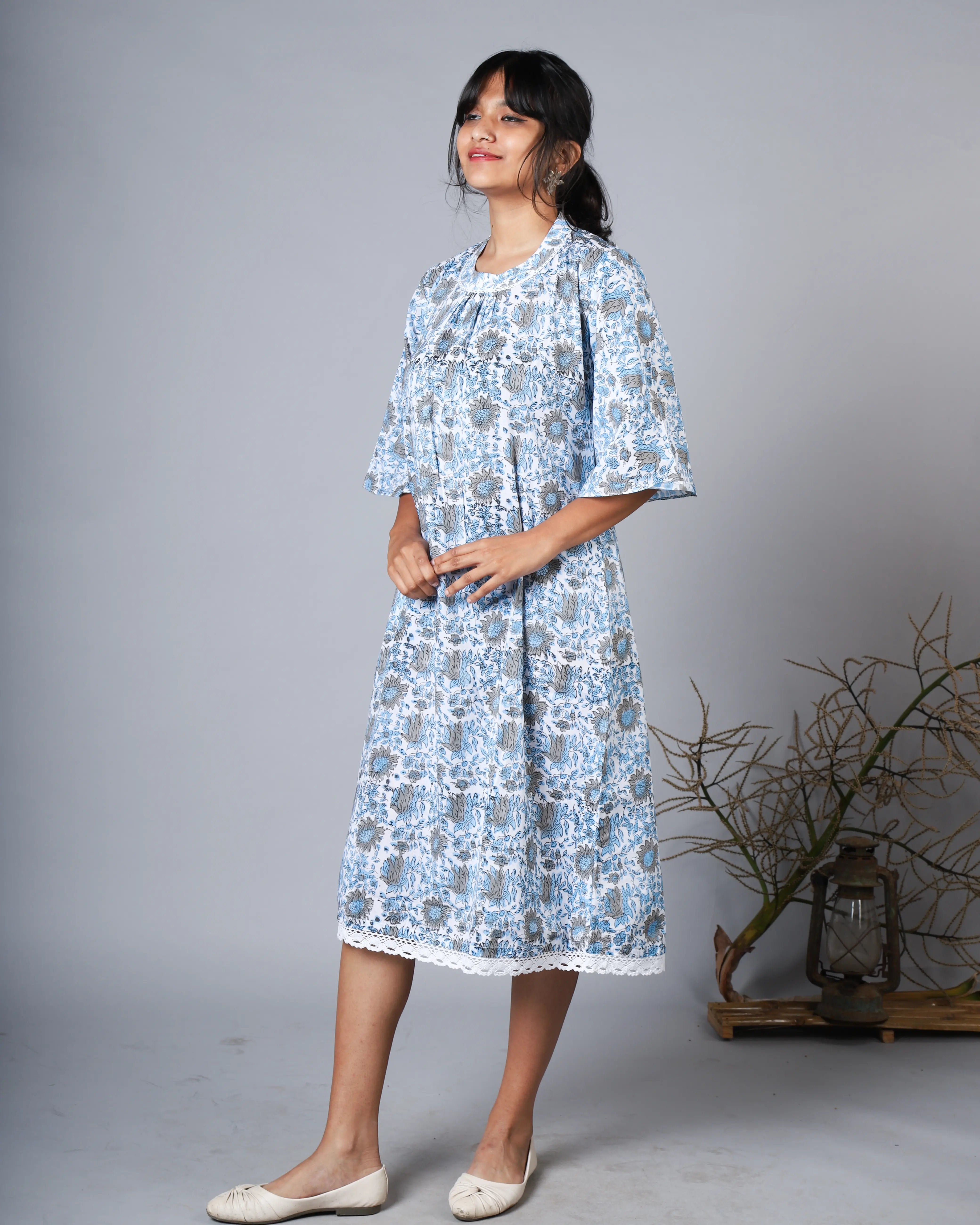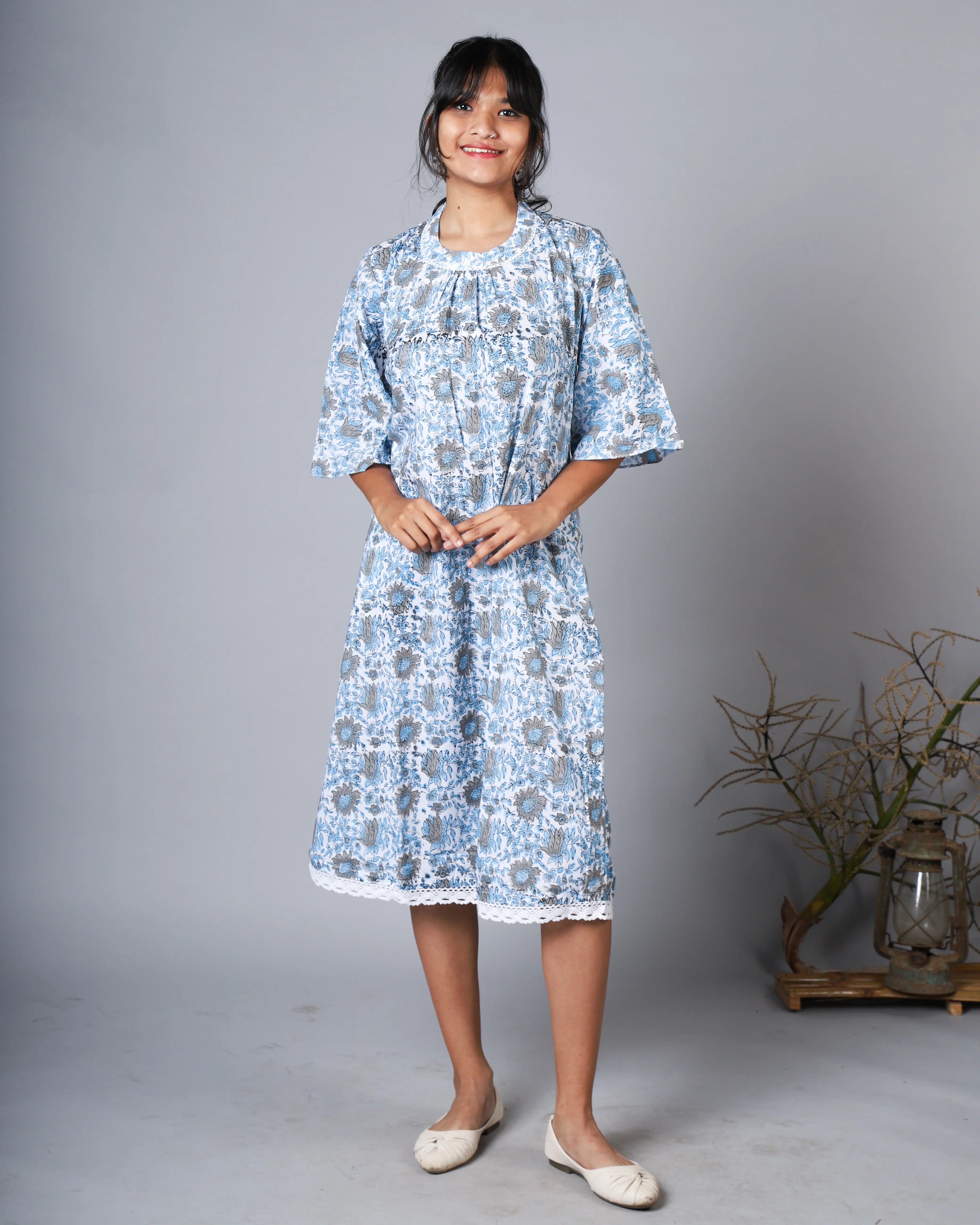 A masterpiece of Rajasthan’s textile artistry, the Katun Arpita Collection showcases the elegance of Sanganeri prints, adorned with delicate crochet lace. The floral and geometric motifs, created using traditional hand-block techniques, bring a timeless charm, while the soft, breathable fabric ensures all-day comfort.