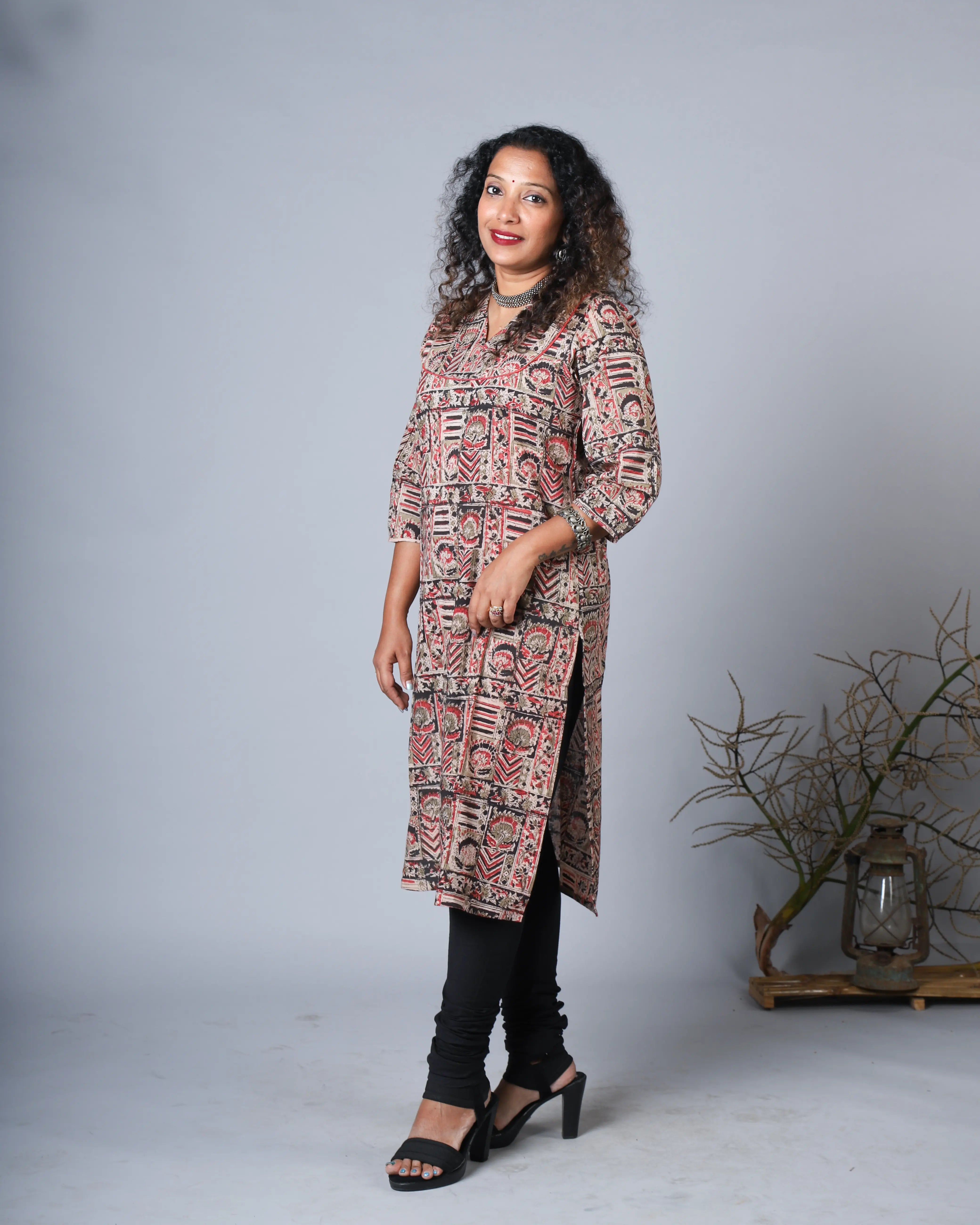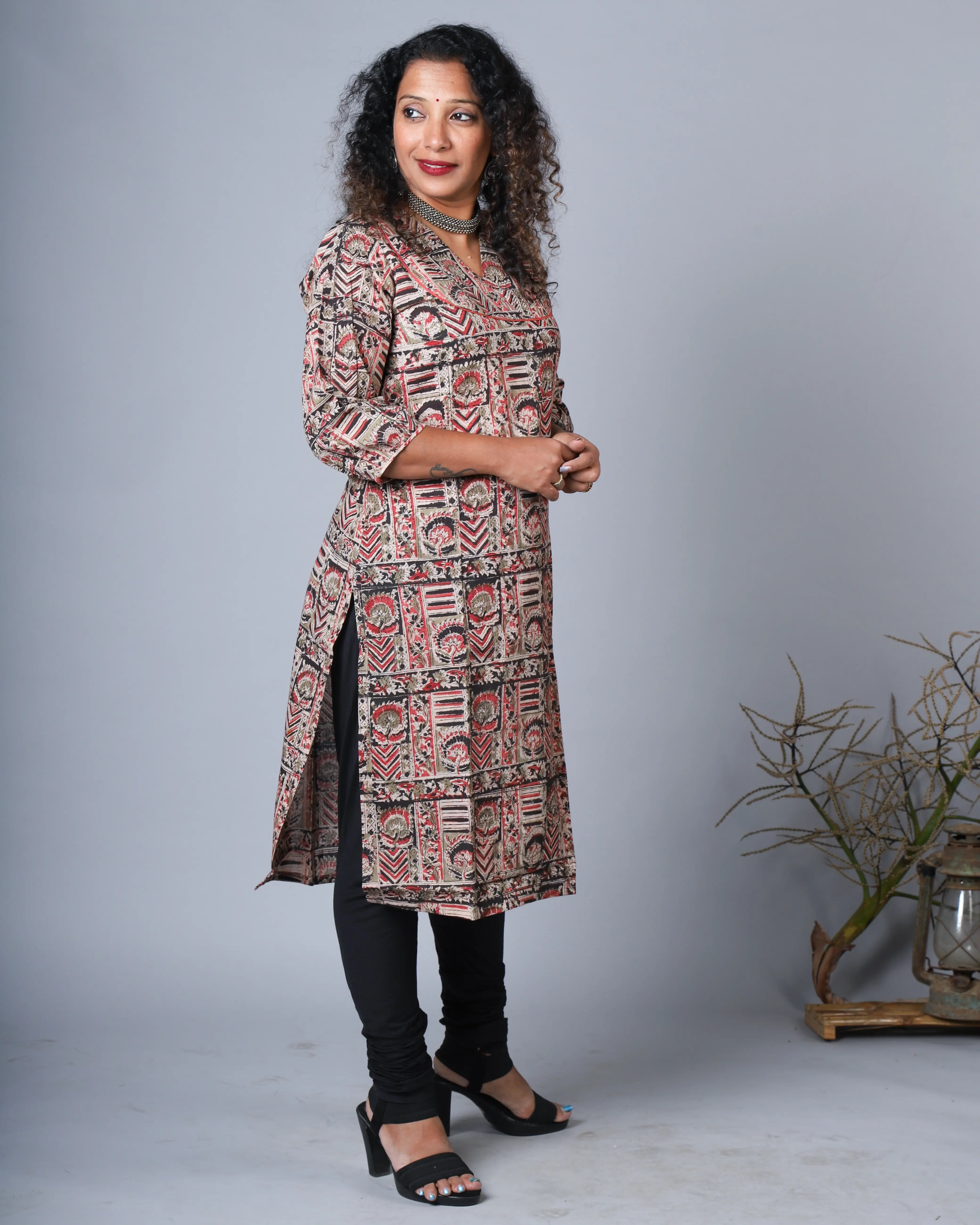 Katun Chaitra Collection - Kalamkari Block Print with Round Neckline