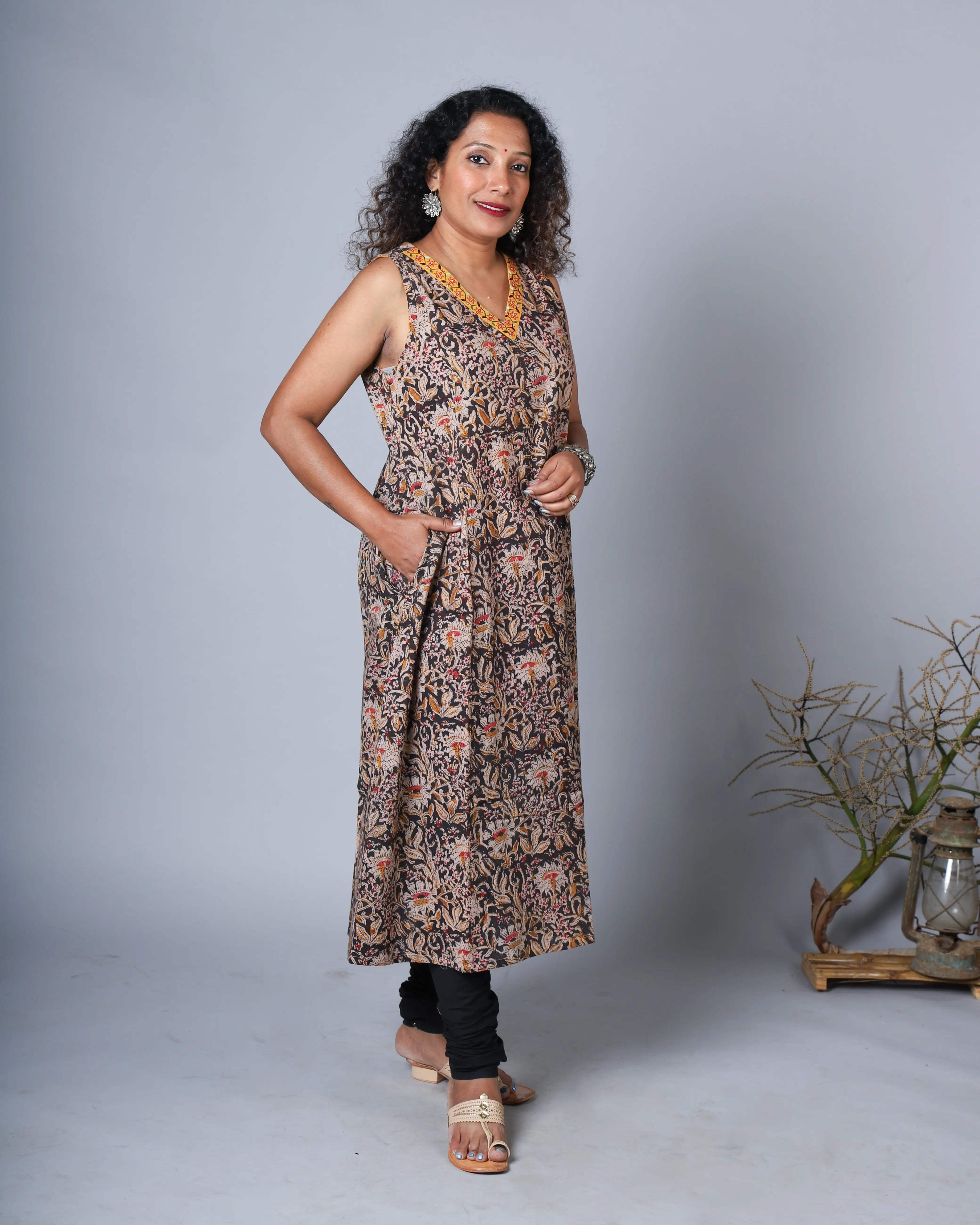 Katun Chaitra Collection - Kalamkari Block Print with Hand Embroidery on Neckline
